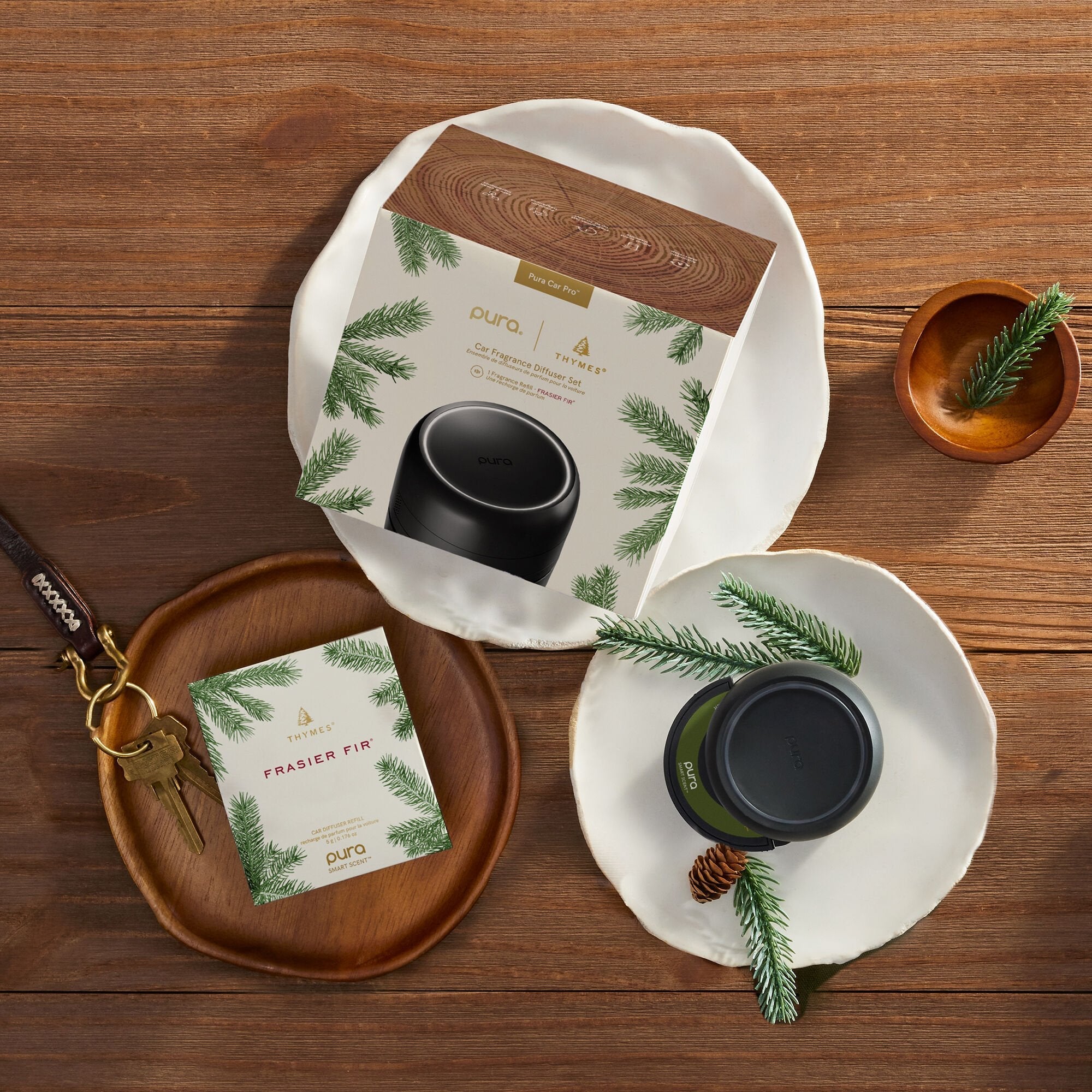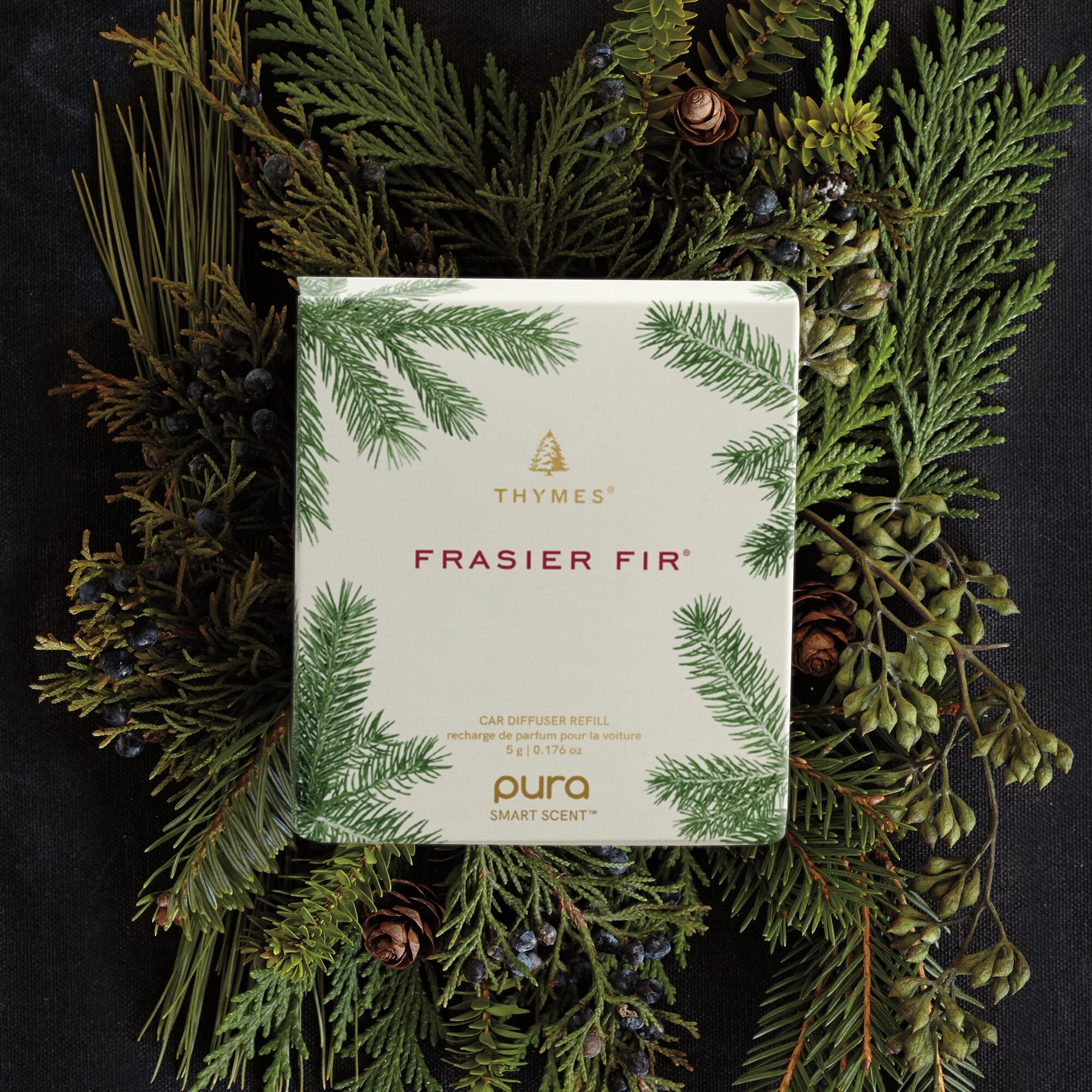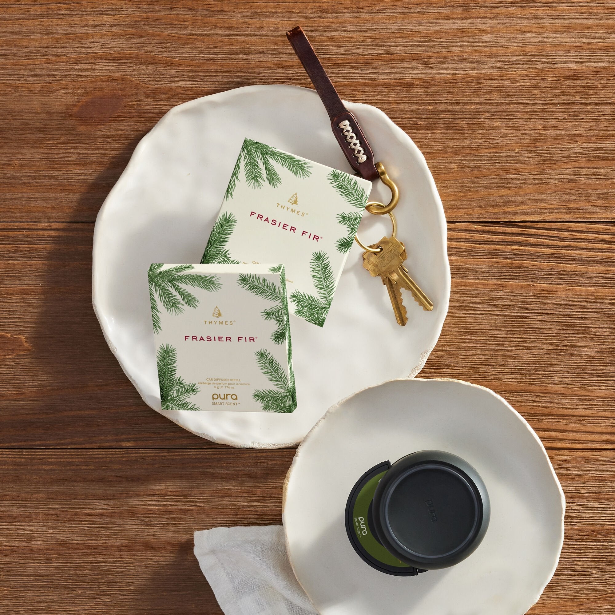 Thymes has partnered with Pura to bring our iconic fragrances to life. This kit includes two Pura Car Diffuser refills in our timeless Frasier Fir fragrance. Take your favorite holiday scent on the road as the aromatic snap of Siberian fir, warming cedar, and grounding sandalwood create a familiar comfort for every drive.