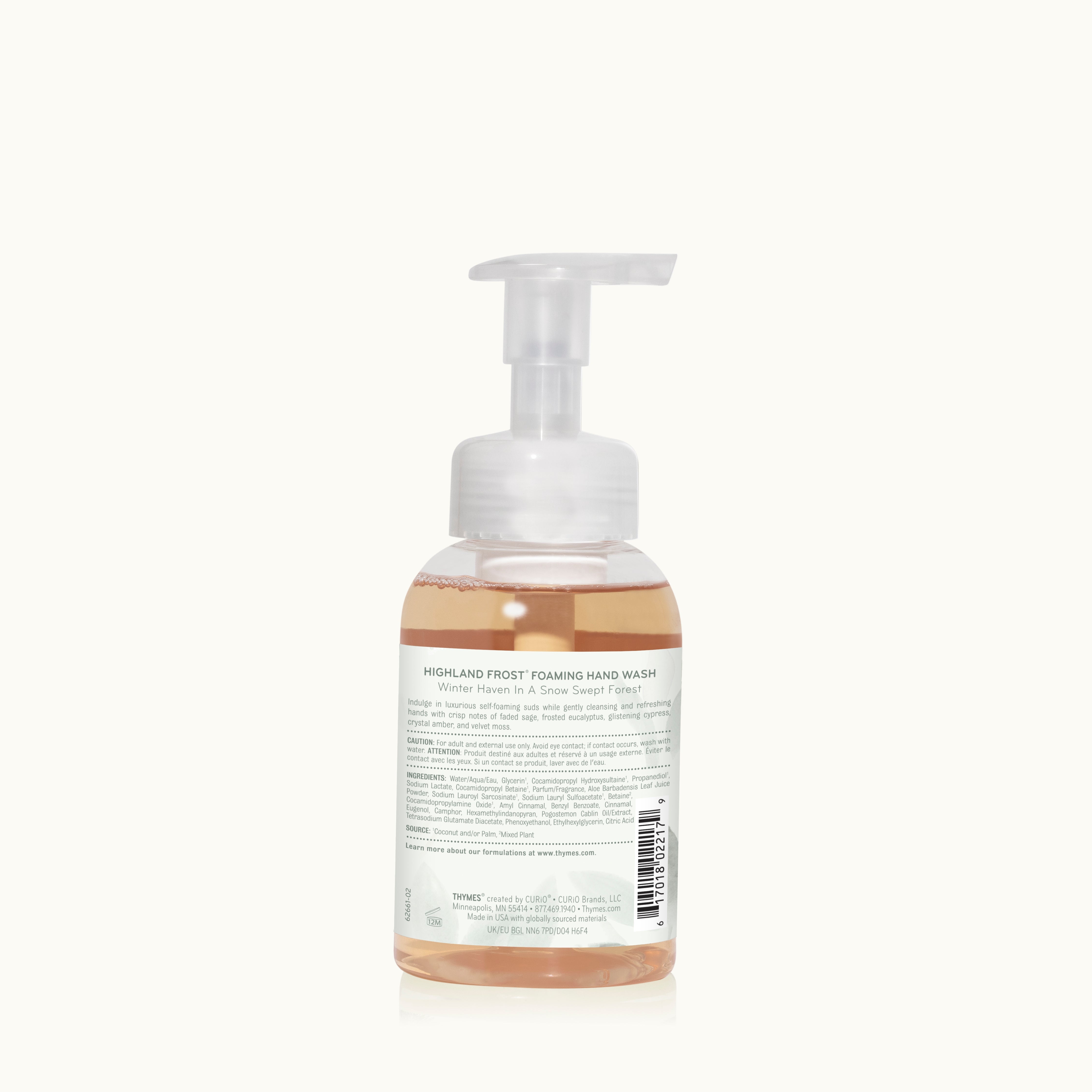 Refresh your hand care routine with the crisp, invigorating scent of our Highland Frost Foaming Hand Wash. This self-foaming formula produces a silky, hydrating lather that helps leave hands soft and lightly scented. With notes of sage, eucalyptus, and cypress needles, it captures the essence of a cool, frosty morning, bringing a touch of luxury and forest-inspired fragrance to your home.