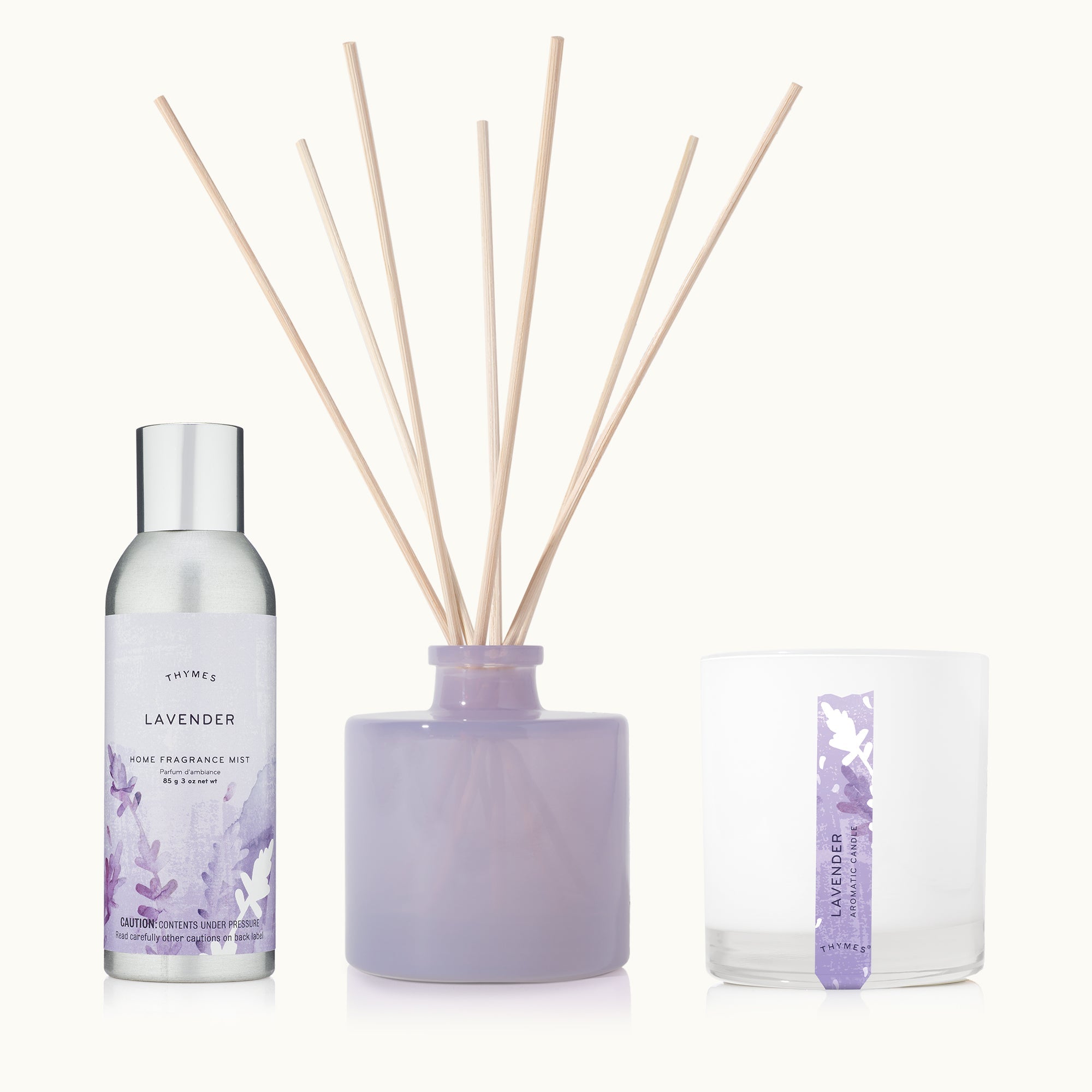 Calm your space with our Lavender Home Fragrance Trio. This curated set features our bestselling formats—home fragrance mist, petite reed diffuser, and candle—designed to refresh your home with ease. Calming notes of lavender, rosewood, sage, and violet create a relaxing atmosphere. Use the home fragrance mist for an instant burst of fragrance, enjoy continuous fragrance with the low-maintenance reed diffuser, or set a soothing tone with the soft glow of the candle. It’s a simple yet elegant way to layer fragrance and elevate your space.